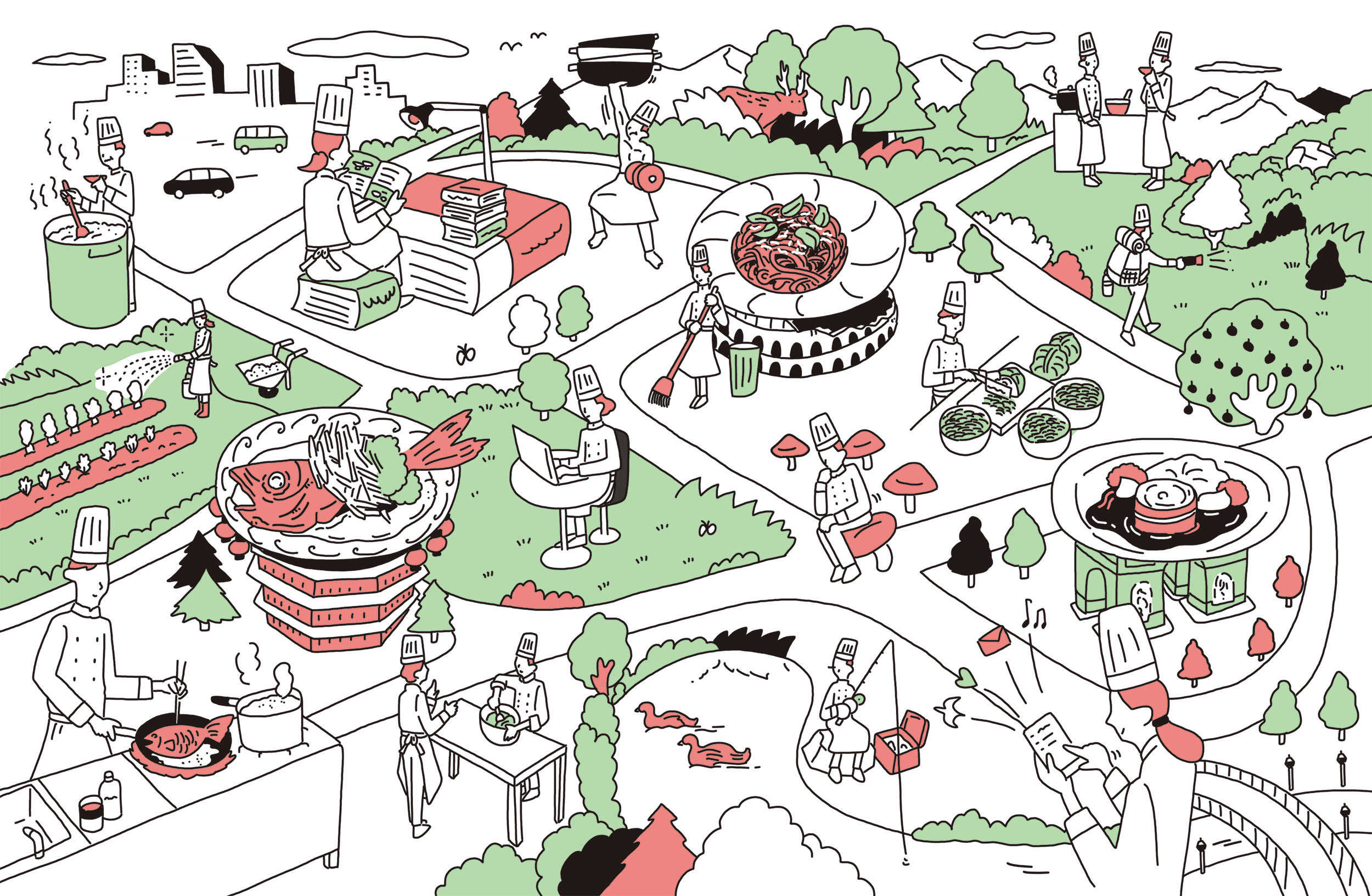 M-size イラスト 11「街の広場はにぎやかです」