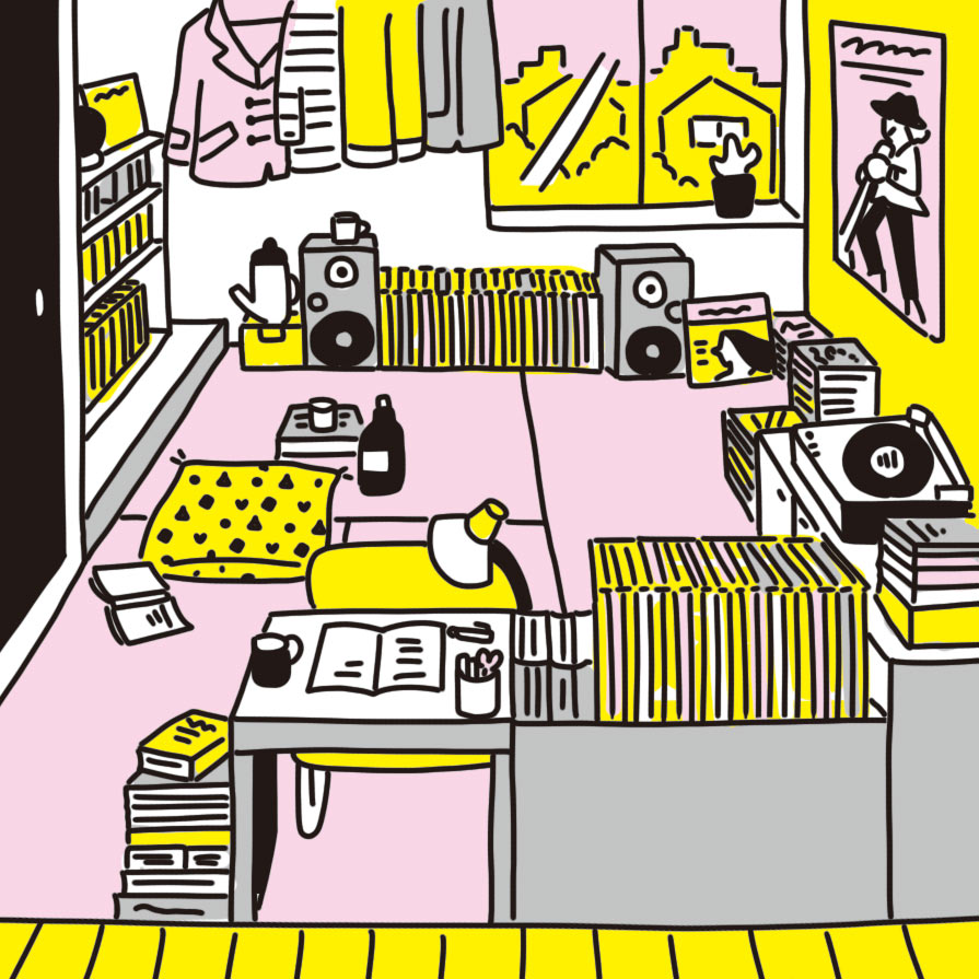 Small イラスト 12「ある下北住人の部屋 レコードいっぱい」